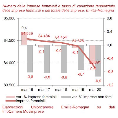 Imprese femminili I trimestre 202030.04.2020 Si accentua la flessione delle imprese femminili (-0,6 per cento)https://www.ucer.camcom.it/api/studi-e-statistica/news/2020/imprese-femminili-2020t1https://www.ucer.camcom.it/api/studi-e-statistica/news/2020/imprese-femminili-2020t1/@@download/image/2020-1-imprese-femminili.jpg
