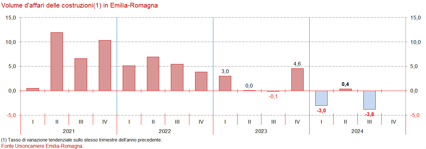 Dall’inverno 2024, nonostante una certa tenuta dell’attività nel corso della primavera, si è invertita la tendenza per l’attività dell’industria delle costruzioni emiliano-romagnola.